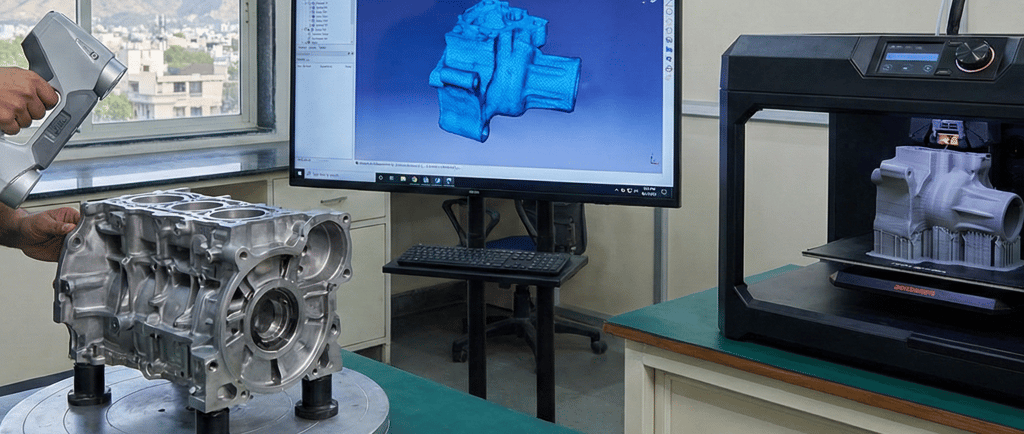 We are excited to welcome you to the online home of VMK Digital LLP, located in the heart of Jaipur, Rajasthan. As a pioneering engineering solution provider, our mission is to serve various industries by transforming physical objects into detailed digital 3D models, and vice versa. We want to clarify that, while we are at the forefront of technological innovation, we are not a digital marketing agency; our focus lies firmly in the realms of advanced 3D scanning, reverse engineering, and rapid prototyping.